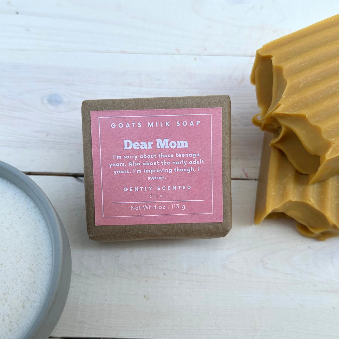 Crafted with love, sarcasm, and a generous serving of our ultra nourishing goat's milk, Dear Mom serves up a daily dose of peace and pampering. So go ahead and treat yourself to our Dear Mom soap because if anyone deserves a moment of pampering and a splash of sass, it's you.